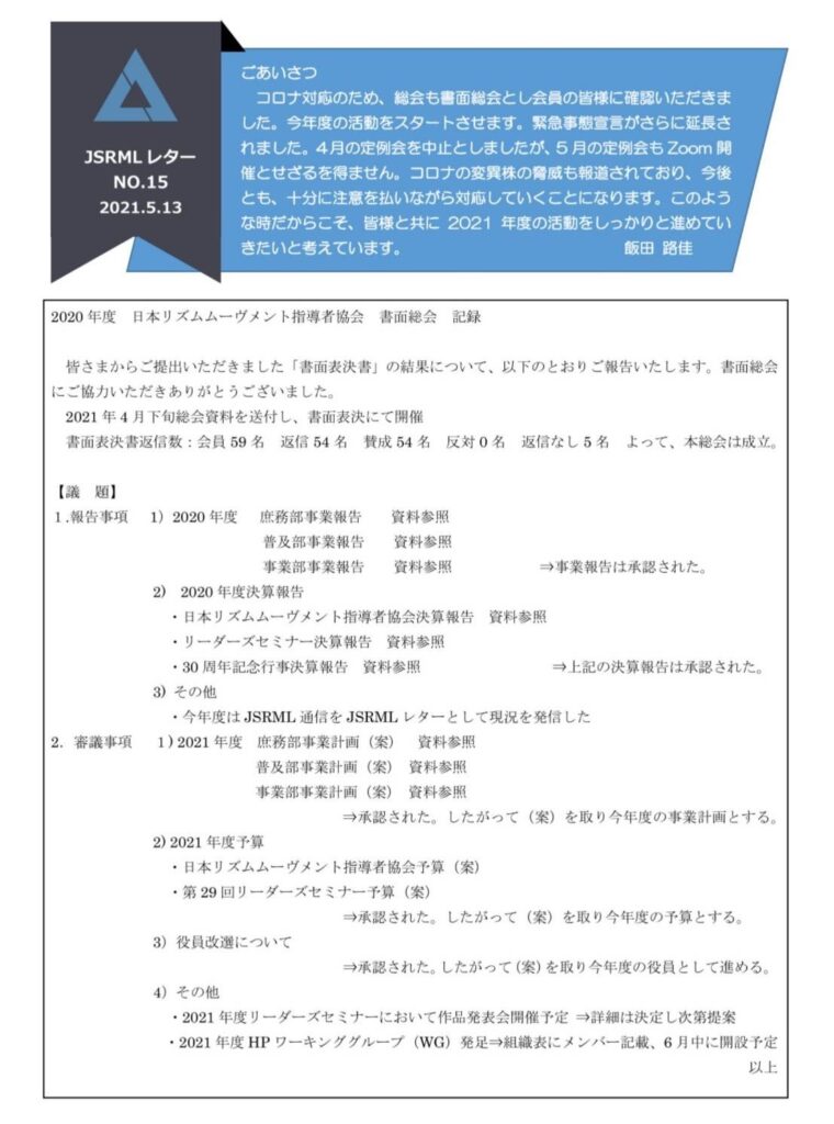 【2020年度 日本リズムムーヴメント指導者協会 書面総会 記録】